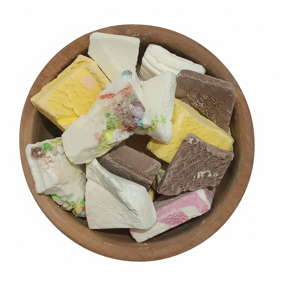 👈 خشک شده با دستگاههای فریز مخصوص به صورت ترد و پفکی